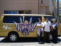 ▲沖縄の誉れ、「琉球ゴールデンキングス」の中村さんとキングスカー